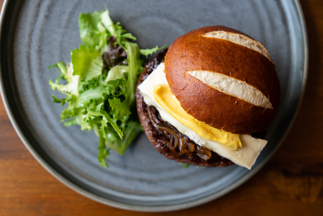 Burger and a pint or medium glass of wine for £18.95 — great midweek value.
